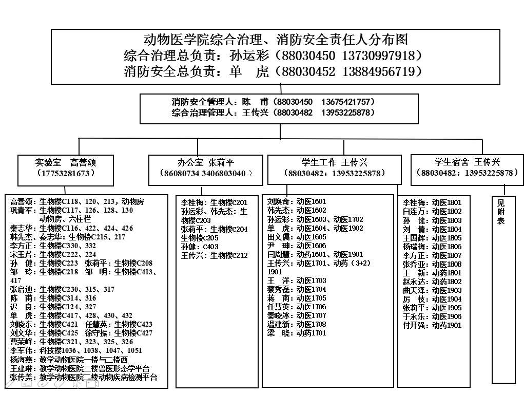 | 班主任 | 班级 | 楼号 | 宿舍号 |